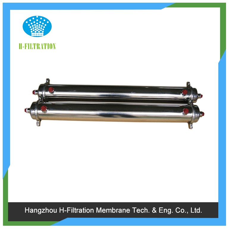 | 產(chǎn)品說明: 電泳漆超濾膜的主要功能是對(duì)電泳涂料(或者噴淋水)進(jìn)行超濾,從而提高電泳槽液品質(zhì),或者回收電泳工件沖洗液中的電泳涂料,降低生產(chǎn)成本,減少排放。本設(shè)備還可廣泛用于電泳涂料超濾凈化、水的過濾凈化以及各種廢水處理等。 電泳漆超濾機(jī)是電泳涂裝線中不可缺少的關(guān)鍵配套設(shè)備,它的作用有以下四個(gè)方面。(1)可回收從電泳工件表面沖洗下來(lái)的多余電泳漆,避免由于帶有漆的廢水直接排放而造成的環(huán)境污染。(2)回收后的電泳漆可直接再利用,從而節(jié)省電泳涂料的消耗量,使企業(yè)節(jié)約30%的電泳漆購(gòu)置費(fèi)。(3)對(duì)槽液進(jìn)行超濾,超濾出水可以對(duì)工件進(jìn)行沖洗,沖洗液直接回流電泳槽,可實(shí)現(xiàn)閉路循環(huán)清潔生產(chǎn),實(shí)現(xiàn)零排放。(4)通過排放適量超濾液,可除去生產(chǎn)過程中帶入電泳漆槽中的各種離子,降低電導(dǎo)率,穩(wěn)定電泳漆槽液,提高涂裝工藝質(zhì)量。 UF4040D-SS是電泳漆超濾膜中常見的一種,外殼為不銹鋼材料,過濾膜面積超過12M2,超濾出液量>120L/H, 適合于不同的電泳涂料。對(duì)陰陽(yáng)樹脂電泳漆具有超濾出水量大,通量穩(wěn)定的特點(diǎn)。具體技術(shù)參數(shù)如下表。